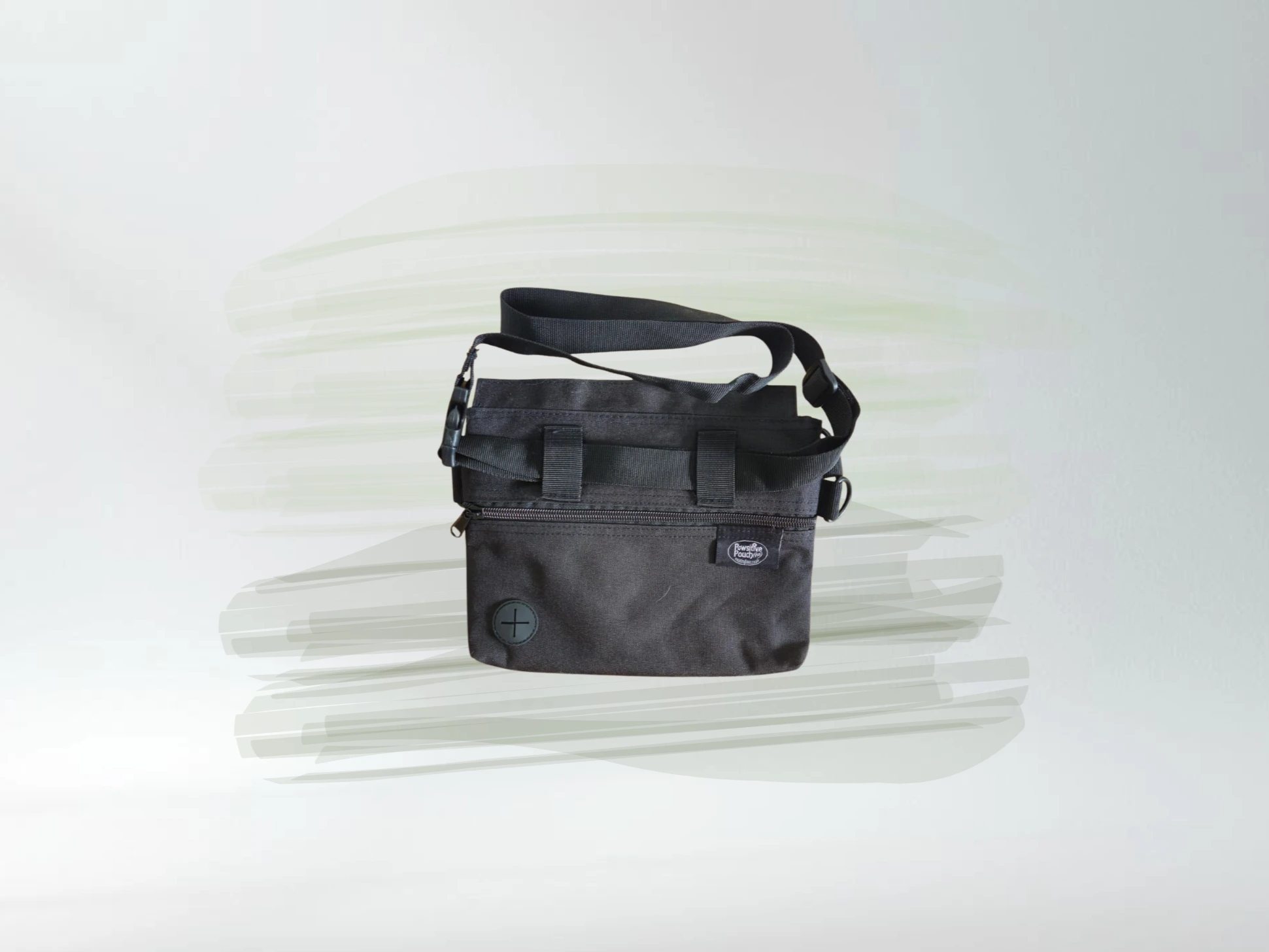 Daarnaast heeft het tasje verschillende handige opbergvakken. Het voorvak met klittenband is groot genoeg voor een telefoon of speeltje. Het achtervak met rits heeft een geïntegreerde poepzakjes-dispenser, zodat je ook tijdens wandelingen alles bij de hand hebt. Aan de zijkanten zitten D-ringen en een haakje om bijvoorbeeld een clicker of sleutels aan te bevestigen.